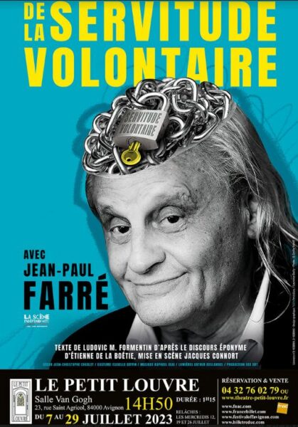 retrouvez jean paul farré au petit louvre théâtrepour « de la servitude volontaire » tout les jour à 14h50 sauf les mercredi