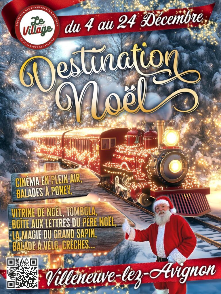 Margaux et Roland nous présentent les festivités de Noël à Villeneuve du 4 au 24 décembre. Cinéma en plein air, balades à vélo et à poney, grande tombola, animations… Organisés par la fédération des commerçants de Villeneuve-lez-Avignon