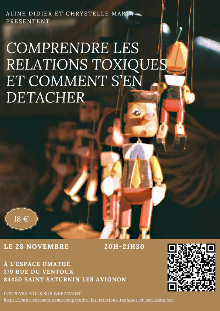 Chrystelle Marty et Aline Didier de l’espace Omathé nous présentent la conférence du vendredi 28 novembre 2025 à Saint-Saturnin (84). On en profite pour aborder le thème des pervers narcissiques et des relations toxiques avec nos deux spécialistes.